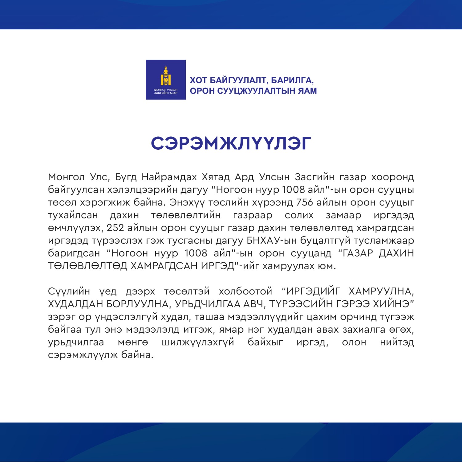 АНХААР: “Ногоон нуур 1008 айл”-ын орон сууцанд хамруулна гэж иргэдийг залилж байна