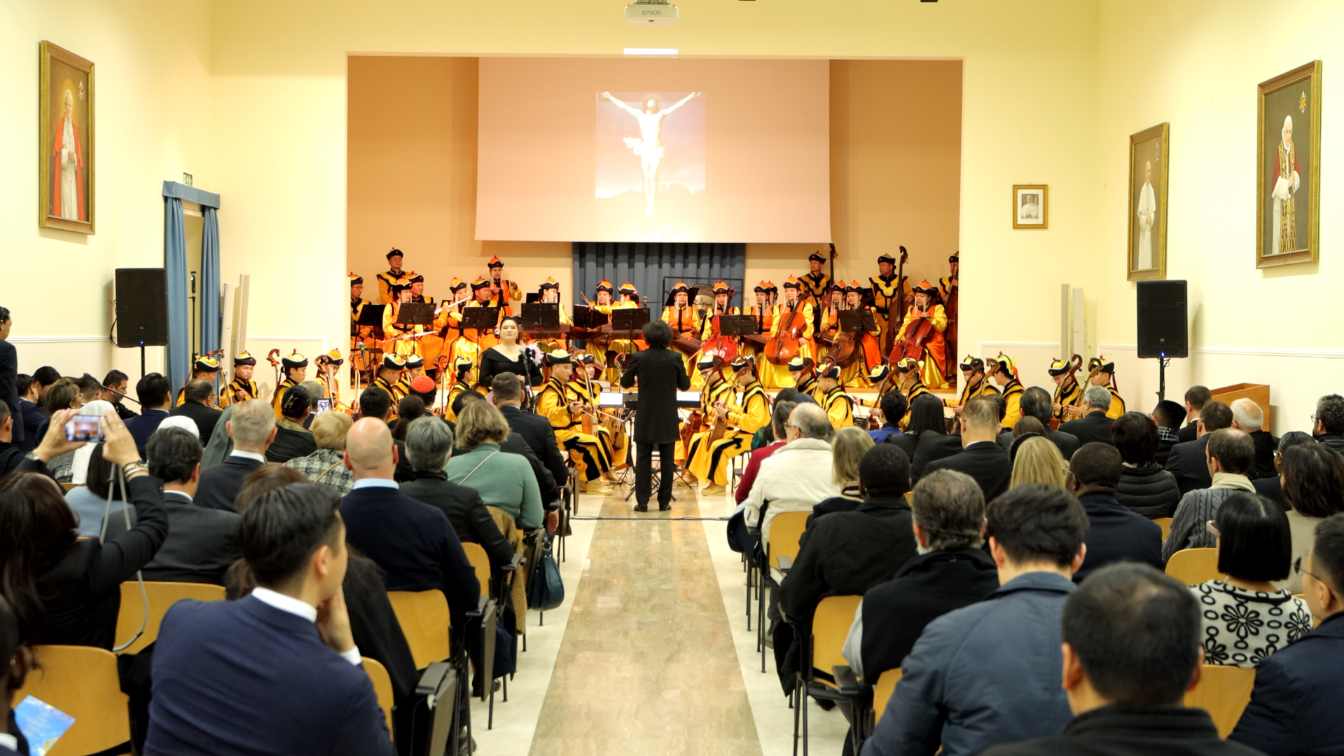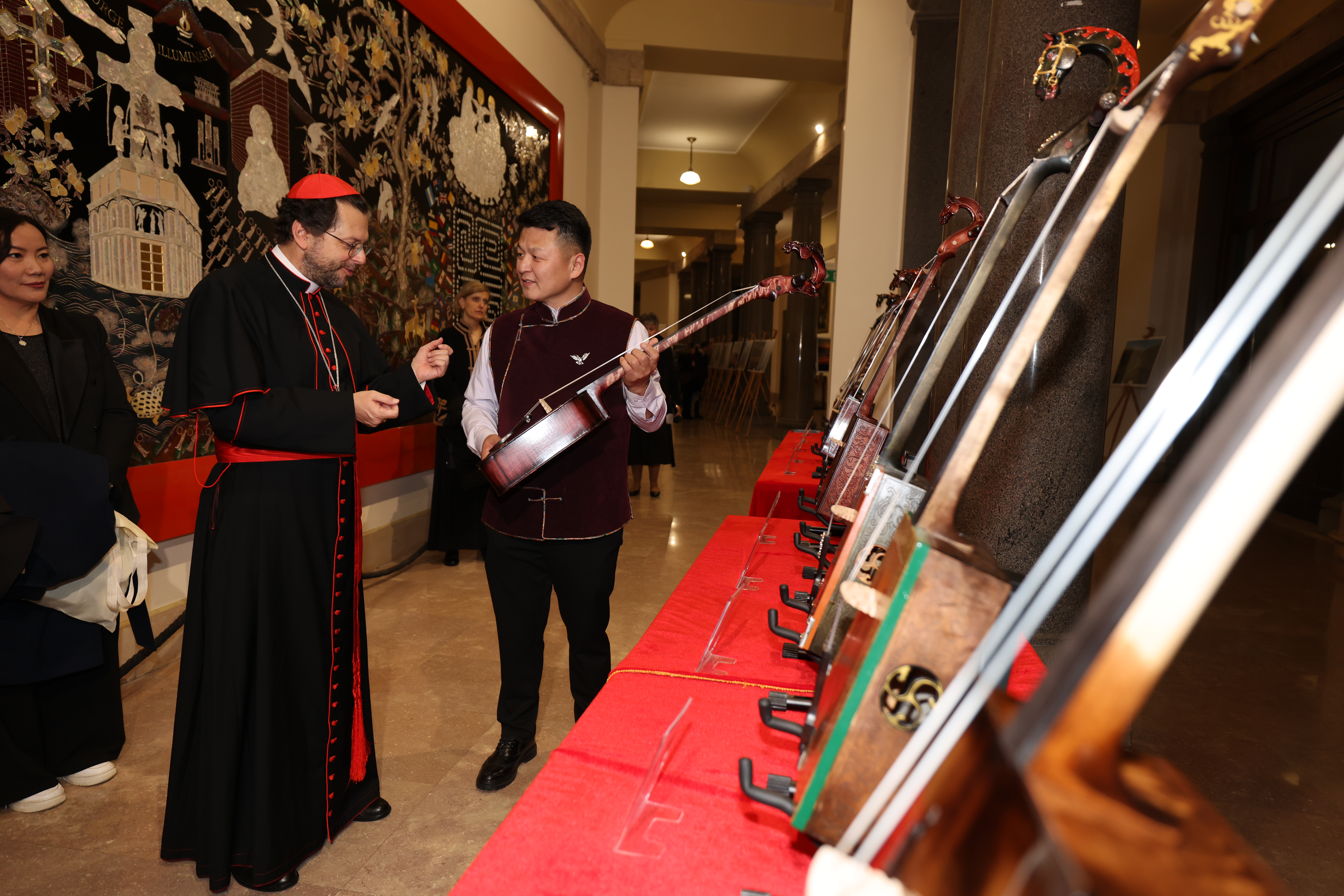 Монгол Улсын Ерөнхийлөгч Ухнаагийн Хүрэлсүхийн Гэгээн Ширээт Улсад хийж буй төрийн айлчлалын хүрээнд нүүдэлчдийн соёлын өв, урлаг, уран сайхны дээж болсон Улсын Филармонийн Морин хуур найрлын “Монголын сайхан орон” тоглолтыг анх удаа тус улсын Папын Урбаны Коллеж түүхэн их сургуулийн танхимд зохион байгууллаа.
