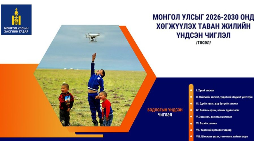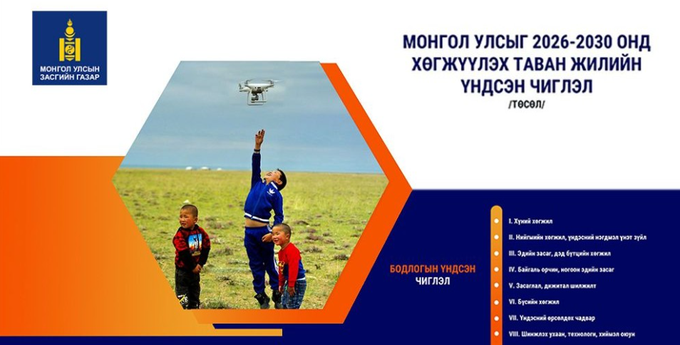 МОНГОЛ УЛСЫГ 2026-2030 ОНД ХӨГЖҮҮЛЭХ ТАВАН ЖИЛИЙН ҮНДСЭН ЧИГЛЭЛИЙН ТӨСЛИЙГ БҮРЭН ЭХЭЭР НЬ ХҮРГЭЖ БАЙНА