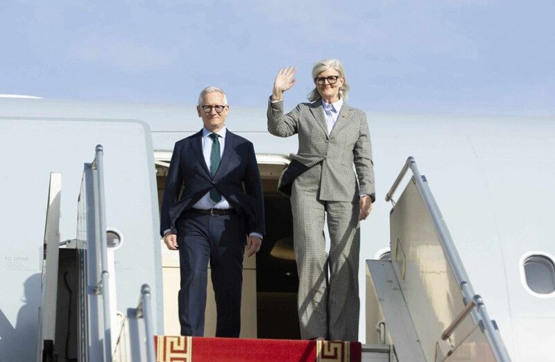 Амбан захирагч Саманта Мостин болон нөхөр Симеон Бэкэтт нарыг “Чингис хаан” олон улсын нисэх онгоцны буудалд Гадаад харилцааны сайд Б.Батцэцэг, Австралийн Холбооны Улсаас Монгол Улсад суугаа Онц бөгөөд Бүрэн эрхт Элчин сайд Лео Зенг нар угтан авлаа.
