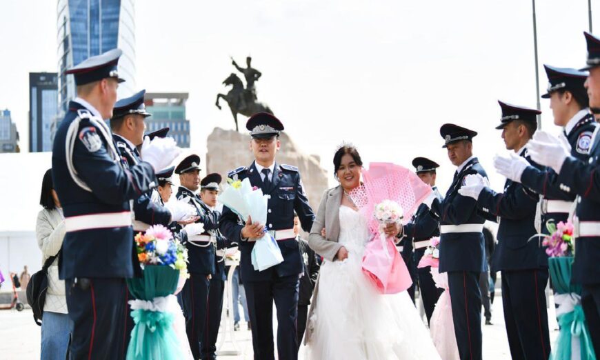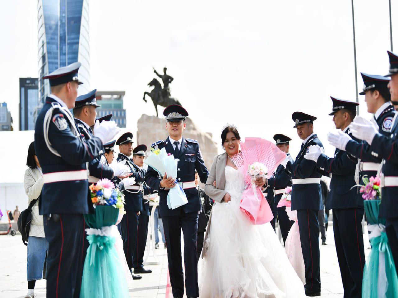 Нийслэлийн нутгийн захиргааны байгууллага НОБГ, ОСНААУГ, УСУГ, Нийслэлийн Цагдаагийн удирдах газар, Боловсролын газар, Зорчигч тээвэр 4, Баянгол эрүүл мэндийн төвөөс ажил амьдралын зам мөрөө холбосон долоон хос “Гэрлэх ёслолын ордон”-д өнөөдөр хуримлалаа.