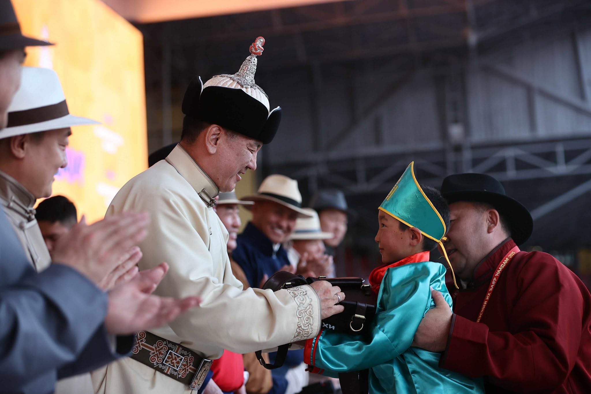 Монгол Улсын Ерөнхийлөгч Ухнаагийн Хүрэлсүх Тулгар төрийн 2234 жил, Их Монгол Улс байгуулагдсаны 819 жил, Үндэсний эрх чөлөө, тусгаар тогтнолоо сэргээн мандуулсны 114 жил, Ардын хувьсгалын 104 жилийн ой, Ардчилсан хувьсгалын 35 жилийн ой, Улсын баяр наадмаар азарга, их нас, соёолон, хязаалан, шүдлэн, даага насны хурдан морины уралдаанд унасан хүлгээ түрүү магнай, аман хүзүүнд хурдлуулж, айрагдуулсан унаач хүүхдүүдэд гарын бэлэг гардуулж амжилт хүсэн ерөөлөө.