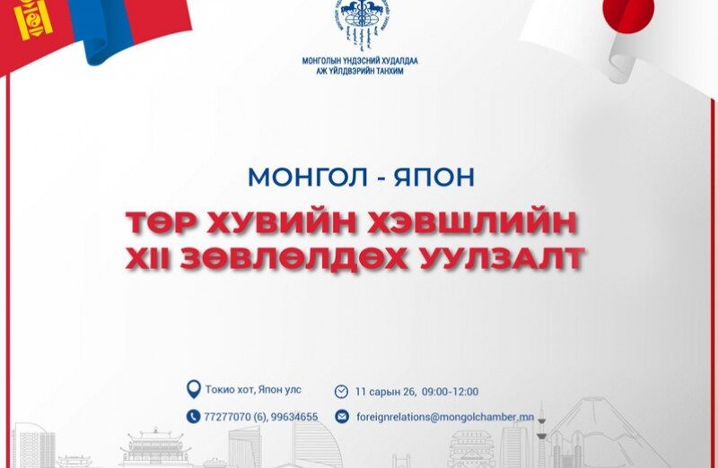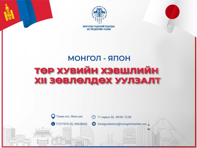 Уулзалтад оролцох Монголын талын төлөөлөгчдийн бүрэлдэхүүнийг баталлаа. Уулзалтад хоёр талын төрийн байгууллага, MYXAYT, Японы Гадаад худалдааг дэмжих байгууллага (JETRO), Япон, Монголын Эдийн засгийн хороо, аж ахуйн нэгжийн төлөөлөл оролцоно.