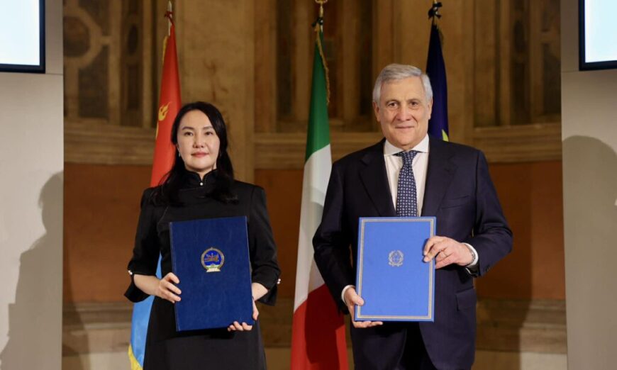 “Боловсрол, соёл, шинжлэх ухаан болон спортын салбарт хамтран ажиллах тухай Монгол Улсын Засгийн газар, Бүгд Найрамдах Итали Улсын Засгийн газар хоорондын 2025-2028 онд хэрэгжүүлэх хөтөлбөр”-т Соёл, спорт, аялал жуулчлал, залуучуудын сайд Ч.Ундрам, Шадар сайд бөгөөд Гадаад хэрэг, олон улсын хамтын ажиллагааны сайд Антонио Таяани нар гарын үсэг зурлаа.