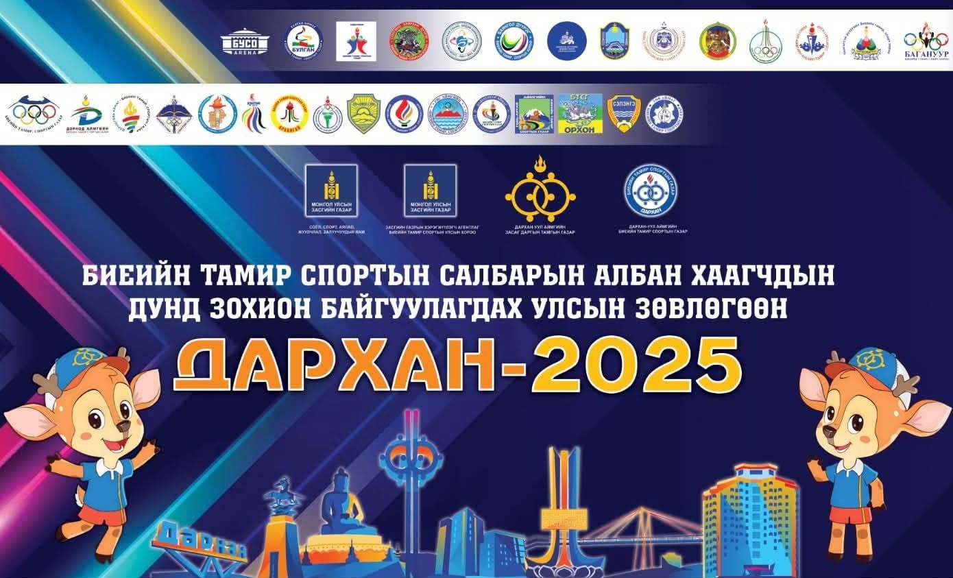 Соёл, спорт, аялал жуулчлал, залуучуудын яам, Засгийн газрын хэрэгжүүлэгч агентлаг Биеийн тамир, спортын улсын хороо, Дархан-Уул аймгийн Засаг даргын Тамгын газар хамтран биеийн тамир, спортын салбарын Улсын зөвлөгөөнийг 21 аймаг, 9 дүүргийн биеийн тамир, спортын төрийн байгууллагын 650, яам, агентлаг, аж ахуйн нэгж, төрийн бус байгууллагын 100 төлөөлөгчдийг хамруулан Дархан-Уул аймагт амжилттай зохион байгуулж өндөрлөлөө. (2025.10.11)