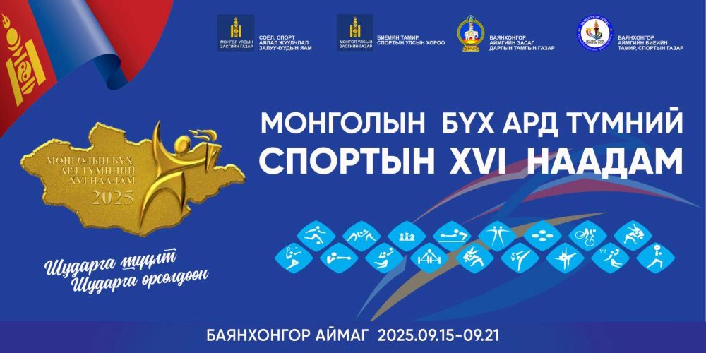 Монголын бүх ард түмний зуны спортын XVI наадам 2025 оны есдүгээр сарын 15-21-нд Баянхонгор аймаг, Улаанбаатар хотод нэгэн зэрэг болно. Энэ наадмын шигшээ тэмцээнд 21 аймаг, есөн дүүргийн 291 дасгалжуулагчийн удирдлага дор нийт 3,258 тамирчин, спортын 28 төрлийн 210 зай, жин, ангилалд 879 багц медалийн төлөө өрсөлдөнө. Олимпын 16, олимпын бус 2, оюун ухааны 2, хөгжлийн бэрхшээлтэй иргэдийн 8 төрлөөр наадмыг зохион байгуулна.
