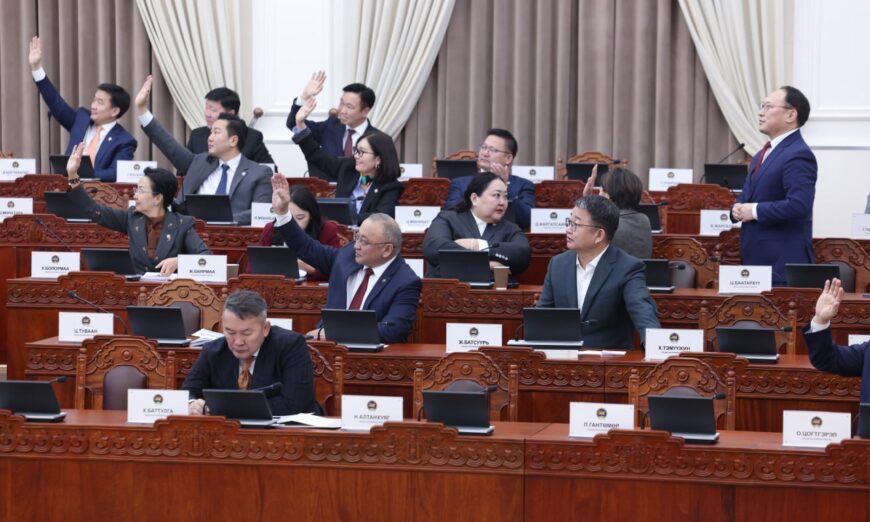· “Монгол Улсын Эрдэнэсийн сангийн үндсэн сангийн орлого, гүйлгээ сангийн орлого, зарлагын 2025 оны гүйцэтгэл, 2026 оны төсвийн тухай” Улсын Их Хурлын тогтоолын төсөл · Төрийн өмчит хуулийн этгээдийн хувьцааг 2026-2028 онд биржээр олон нийтэд нээлттэй худалдах, төрийн өмчийг хувьчлах, өөрчлөн байгуулах үндсэн чиглэл батлах тухай” Улсын Их Хурлын тогтоолын төсөл /Засгийн газар 2025.12.18-ны өдөр өргөн мэдүүлсэн, хэлэлцэх эсэх/ · Байнгын хорооны тогтоолын төсөл /Ажлын хэсэг байгуулах тухай/ · “Засгийн газарт чиглэл өгөх тухай” Улсын Их Хурлын тогтоолын төсөл · Бусад |