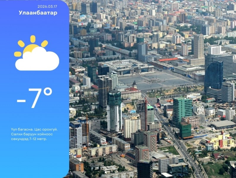 УЛААНБААТАР ХОТ ОРЧМООР: Үүл багасна. Цас орохгүй. Салхи баруун хойноос секундэд 7-12 метр. 5-7 хэм хүйтэн байна.