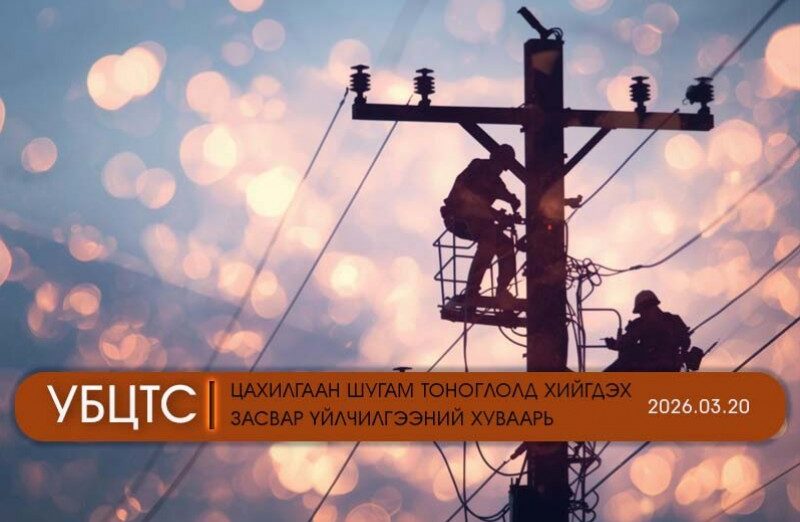 Өнөөдөр буюу 2026 оны гуравдугаар сарын 20-ны Баасан гарагт цахилгаан шугам сүлжээнд хийх засварын хуваарийг танилцуулж байна.