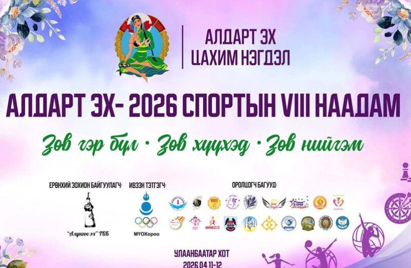 “Зөв гэр бүл-Зөв хүүхэд-Зөв нийгэм” уриан дор эмэгтэйчүүдийн эрүүл амьдралын хэв маягийг дэмжих, идэвхтэй хөдөлгөөн, спортыг хөгжүүлэх, Олимпизмыг түгээн дэлгэрүүлэх зорилготой “Алдарт Эх-2026” спортын VIII наадам дөрөвдүгээр сарын 11-12-ны өдрүүдэд Улаанбаатар хотноо зохион байгуулагдана.